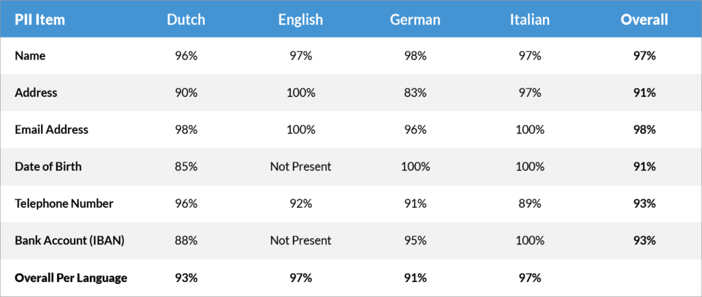Imprima Smart Redaction achieves accuracy (recall) of around 95%