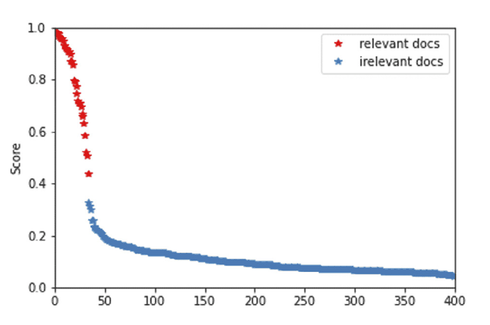 Our test data set consists of circa 400 docs. We now want the AI to find the documents that contain such concepts, by assigning a higher score to the documents that are most likely to be relevant (i.e. containing these concepts) and placing them at the top of the list.